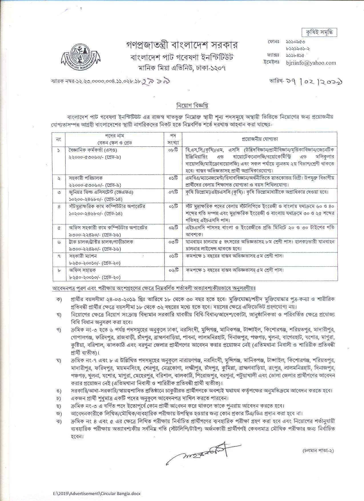 Company Name : Bangladesh Jute Research Institute