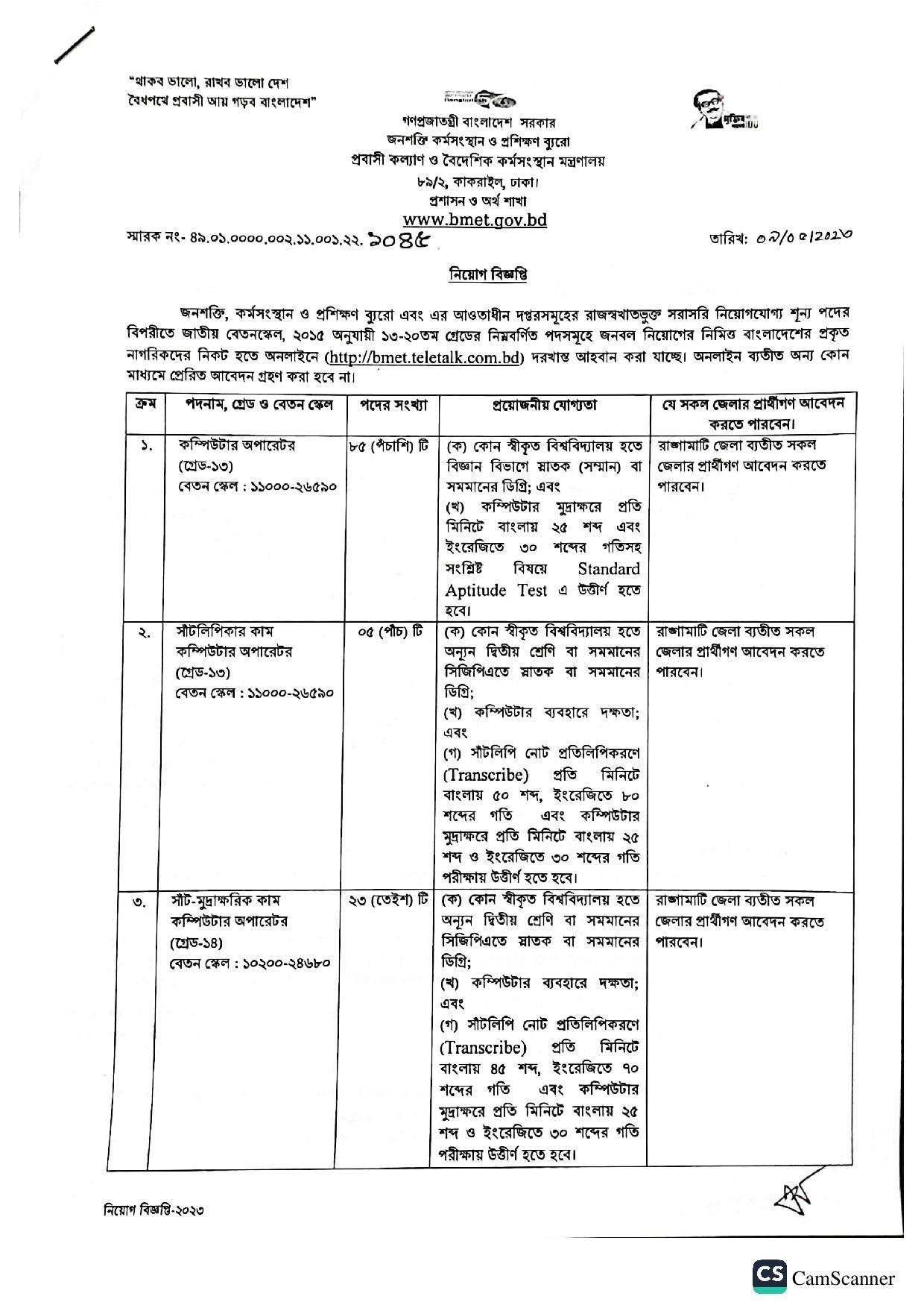 Company Name : Bureau of Manpower, Employment and Training (BMET)