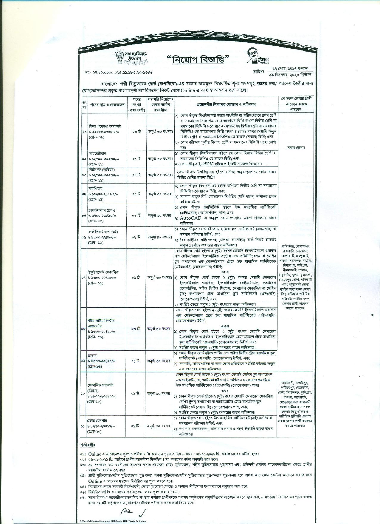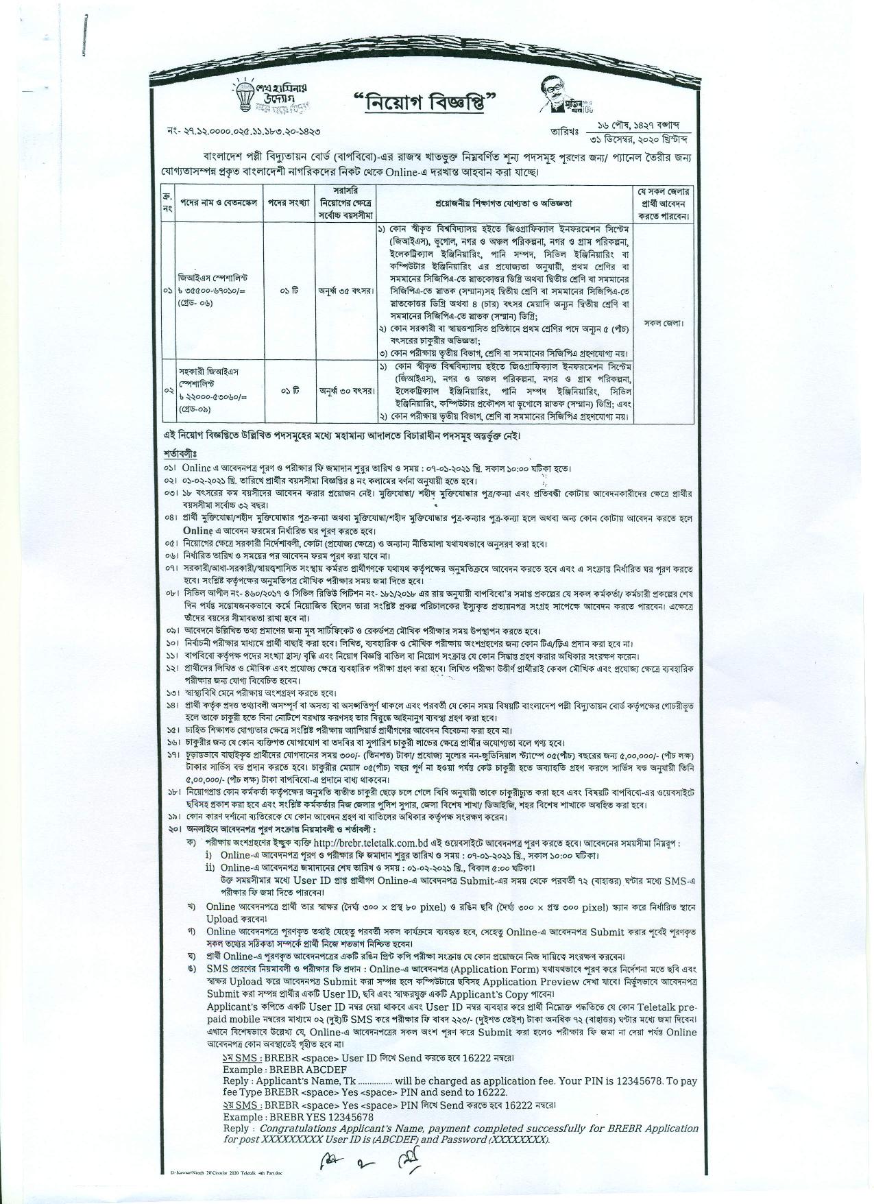 বাংলাদেশ পল্লী বিদ্যুতায়ন বোর্ড (BREB), পদ সংখ্যাঃ .২১৪ টি।