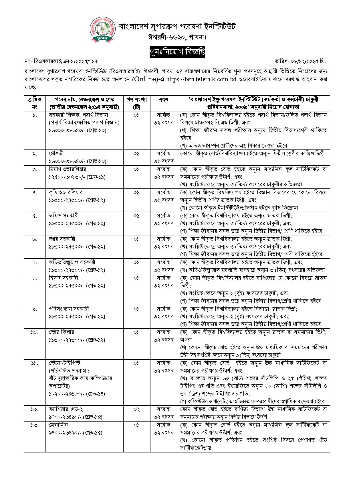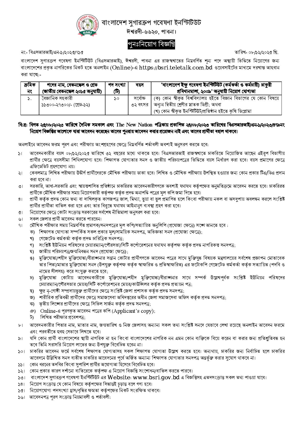 Website : https://bsri.gov.bd