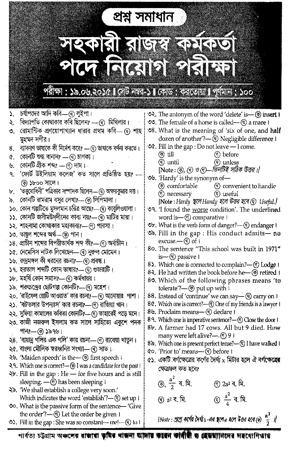 Question Solve / Study MCQ Question Solve 2015 by Chakrir KhoborJanuary 4, 2017 Assistant Revenue Officer Exam Date – 19/06/2015 Full Marks 100